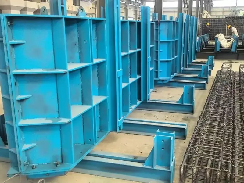 鋼製コンクリート型枠は、鋼板と形鋼から作られ、強度、剛性、寸法精度が高いのが特徴です。鋼製型枠の滑らかな表面により、高品質の注入コンクリートが確保され、繰り返し使用でき、高い収益率が得られます。プレハブ建築コンポーネントの大量工場生産やモジュール式建物の建設など、標準コンポーネントの大規模生産によく使用されます。