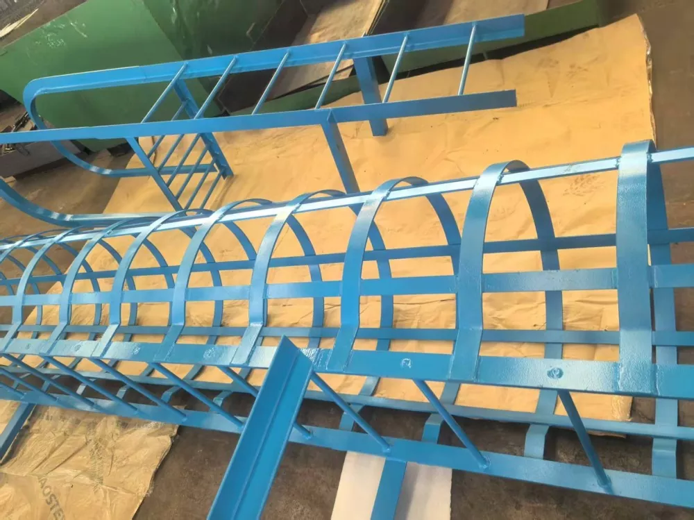 ガードレールの設置: 高さ 3 メートルを超える段差の場合は、地面から 2.5 メートルの高さにガードレールを設置する必要があります。ガードレールの直径は 700 mm ~ 800 mm である必要があります。水平リングは 16 mm の丸鋼で作られ、リング間の距離は 300 mm ~ 450 mm でなければなりません。垂直補強バーは 12 mm の丸鋼で作られ、少なくとも 4 本のバーが均一な間隔で配置されている必要があります。安全ケージは、はしごまたは休憩台の上部に連続して設置する必要があります。コネクタと固定具