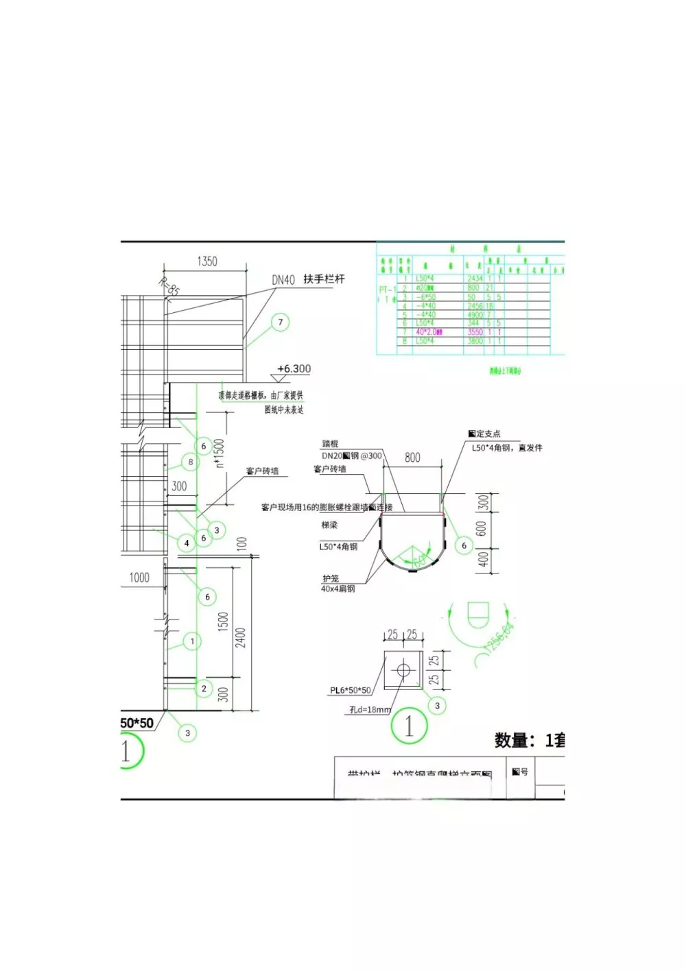材料仕様: 一般的に使用される材料は、∠50×5" アングル鋼 (厚さ 5 mm、辺の長さ 50 mm)、∠60×40×3" 角管 (断面 60 mm x 40 mm、肉厚 3 mm)、および Φ30×3" 丸管 (直径 30 mm、肉厚 3 mm) などの熱間圧延鋼片です。使用される具体的な材料は、はしごの高さと重量によって異なります。 6 メートルを超えるはしごの場合は、少なくとも ∠63×6 インチの山形鋼、または同様の強度のパイプを使用することをお勧めします。